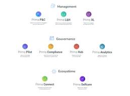 - Prima Connect : la bibliothèque de connecteurs et d’outils de communications entre la suite logicielle Prima Solutions et l’écosystème IT du client et de ses partenaires.